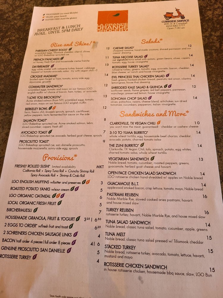 La Grande Orange is a versatile establishment offering grocery items, bakery goods, and mouth-watering pizza. Located in Phoenix, AZ, this trendy spot provides an array of options for all dietary needs, including gluten-free and vegan choices. The atmosphere is casual and welcoming, with amenities like outdoor seating, free Wi-Fi, and a full bar. Customers rave about the delicious food, with highlights like the hot pressed tuna sandwich, stacked turkey sandwich, and sourdough pizzas. Reviews mention the inconsistency in the gluten-free pizza but praise the Sonoma chop salad. The staff is friendly, and the overall experience is enjoyable. La Grande Orange is a must-visit for those craving a delightful meal in a vibrant setting.